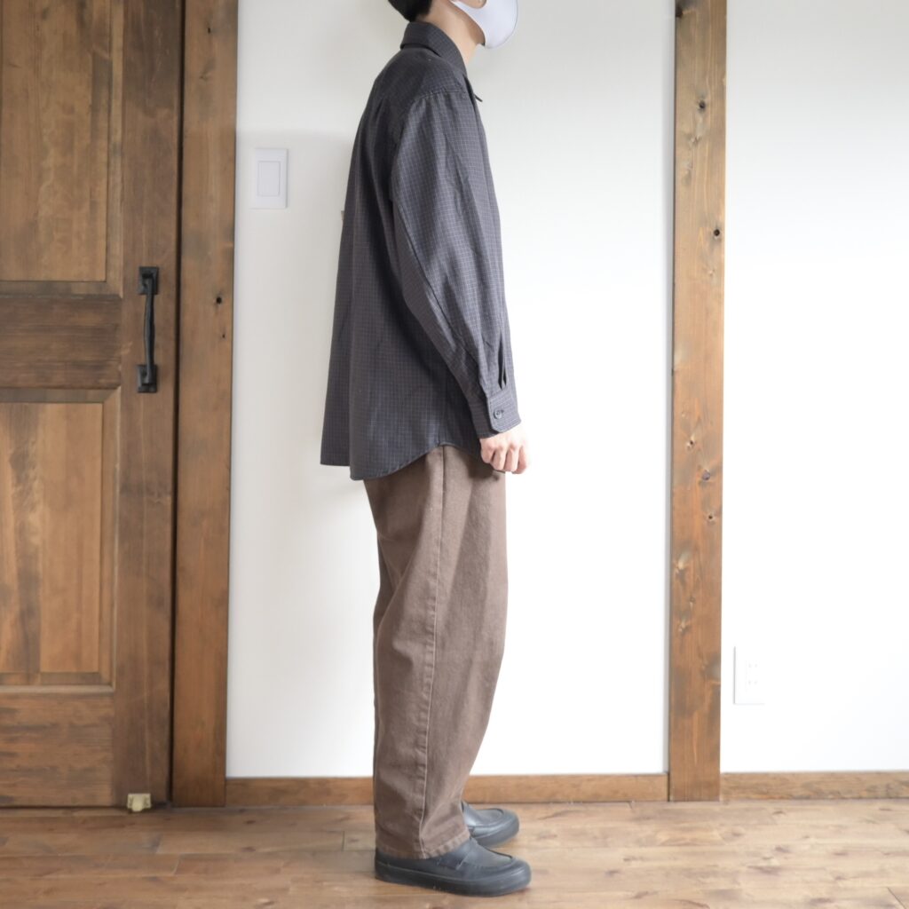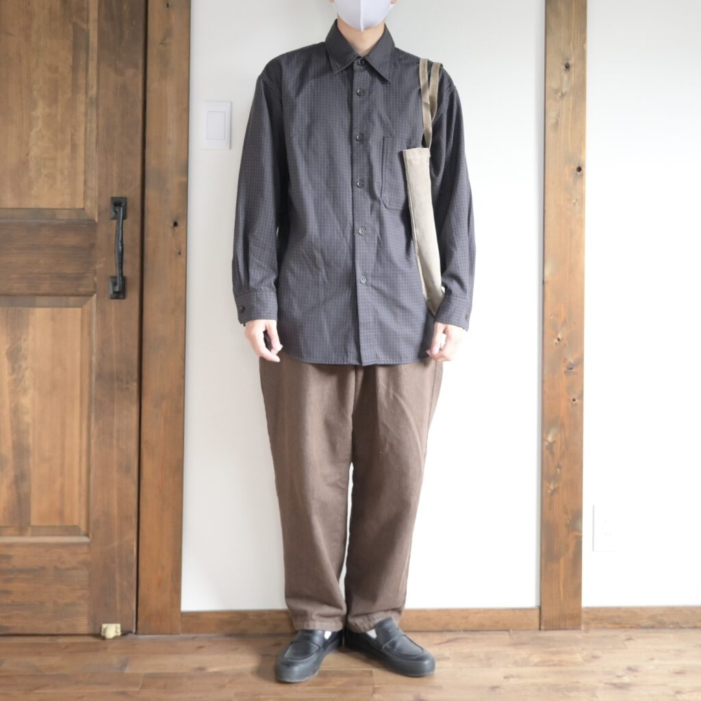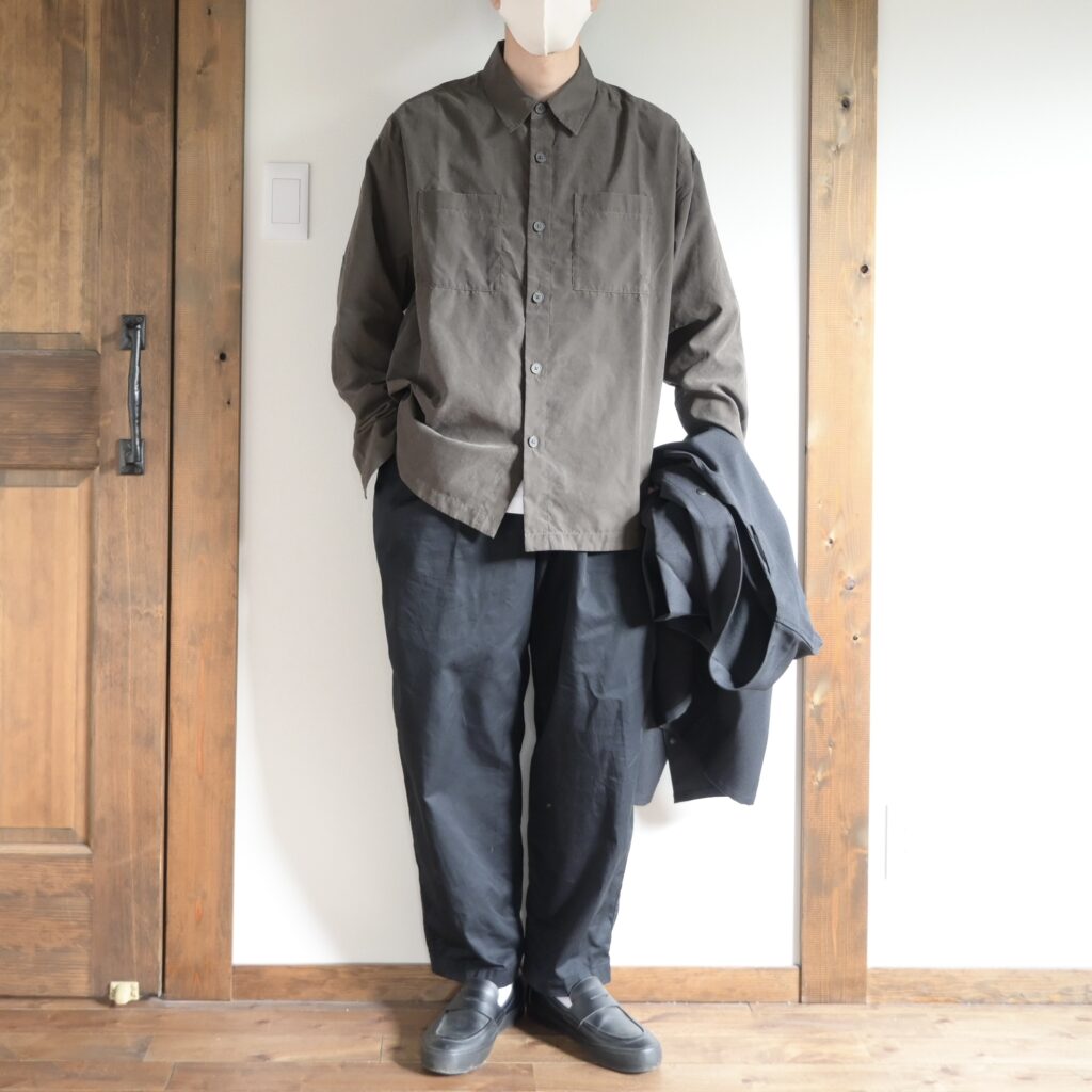 まず1つ目は今季のUNIQLO Uで購入した『ツイルワークオーバーサイズシャツ』を使ってシンプルにシャツコーデです。
