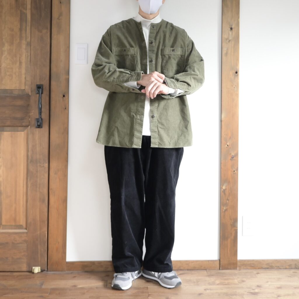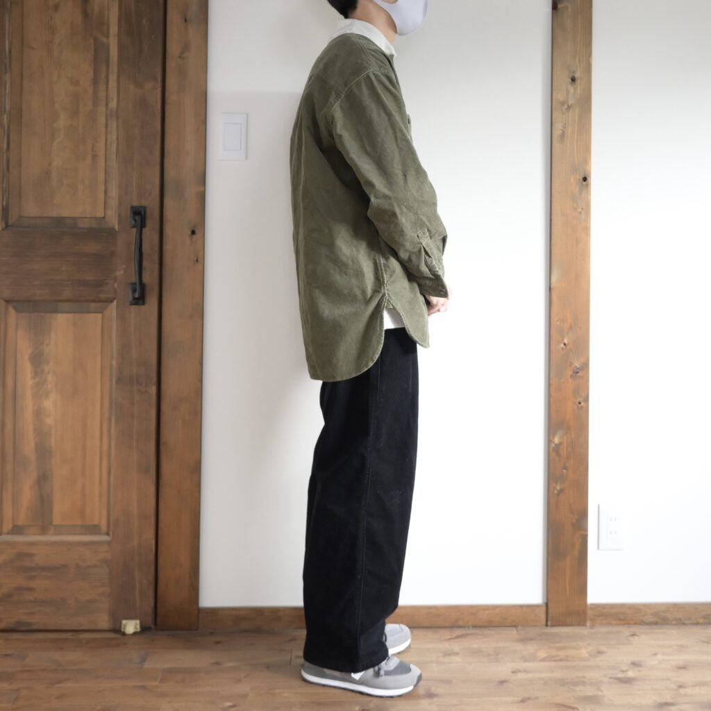 3つ目は今季のユニクロで購入した『コーデュロイロングシャツジャケット』というレディースのアイテムを使ったコーデになります。