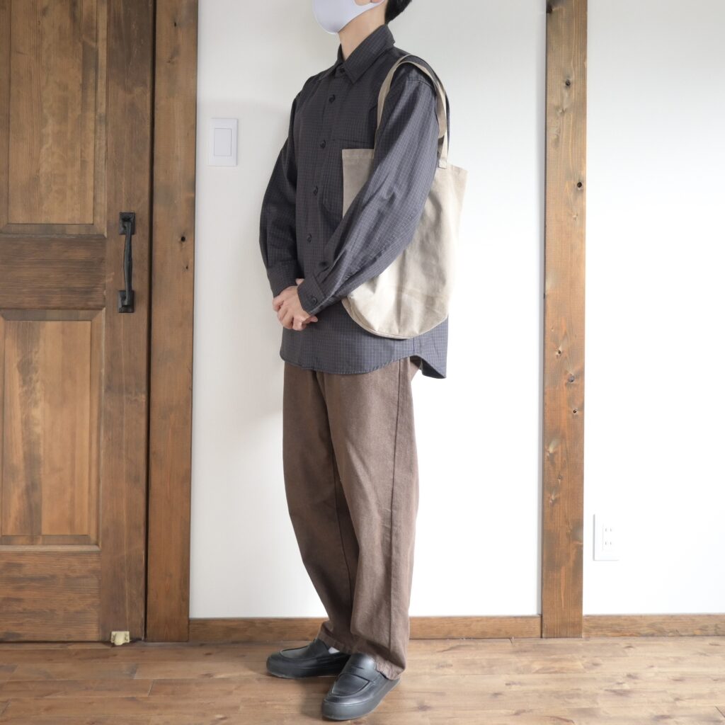 シャツもパンツも男女兼用アイテムなので、男女問わず取り入れやすいコーデかなと思います。