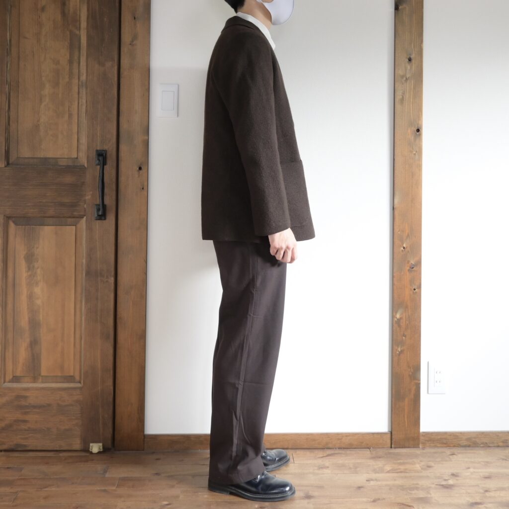 僕は普段ジャケットを着ることがほとんどないので、合わせるパンツが非常に難しいなと感じました。ワイドパンツだとアンバランスに感じるし、色も似たような色以外ではジャケットが浮いてしまうので、ジャケットをもっと自然に普段着に落とし込めるようになりたいです。