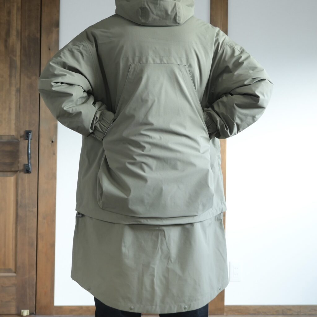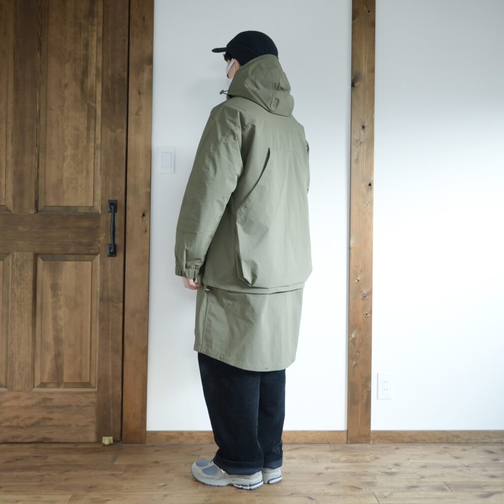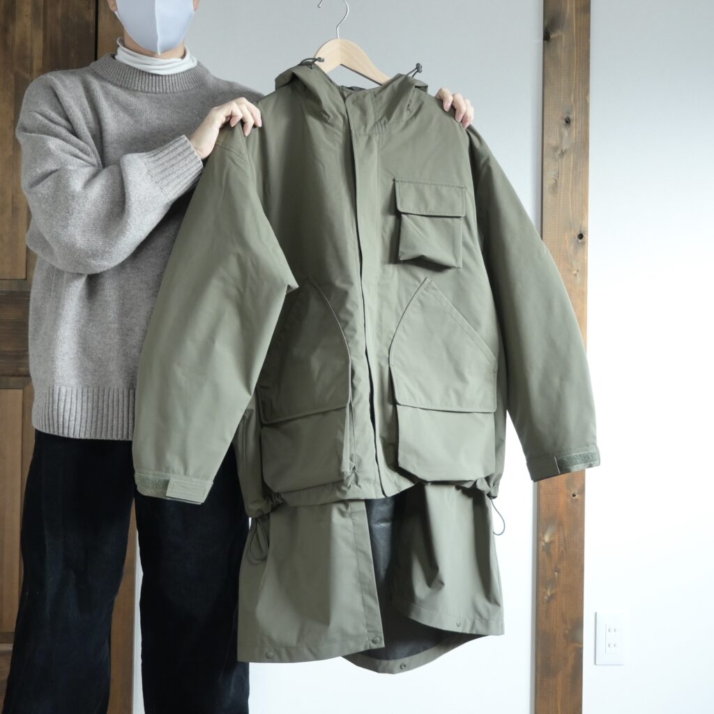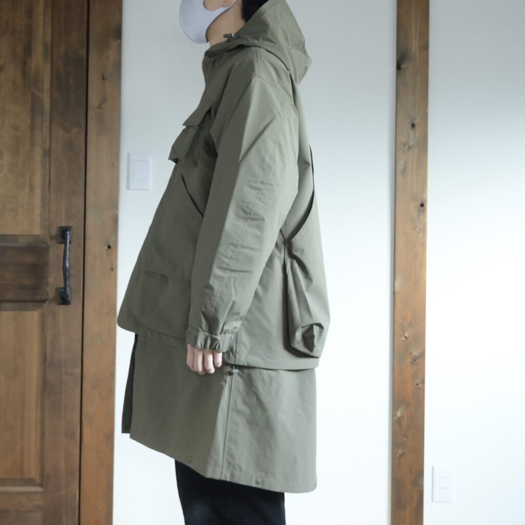 丈の長さを変えられる2WAYデザインで、フードの立体感も凄く綺麗だし軽くて丈夫で動きやすい!僕のような小さい子供がいるお父さんでも使いやすいアウターだと思うので、10代の若い子から50代以上の大人な男性まで幅広い需要がありそうだと感じました。