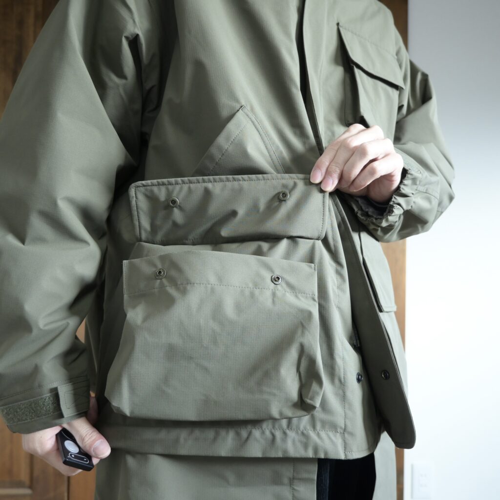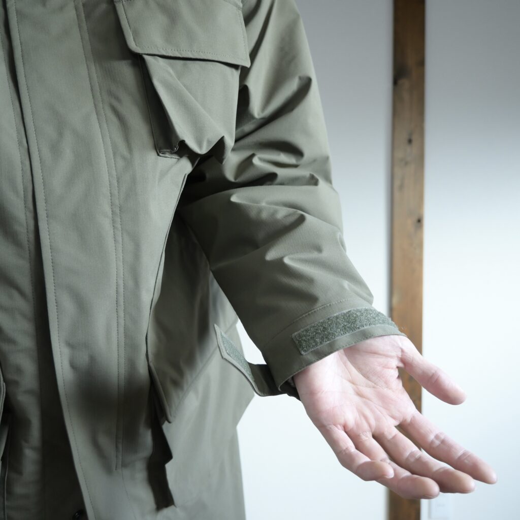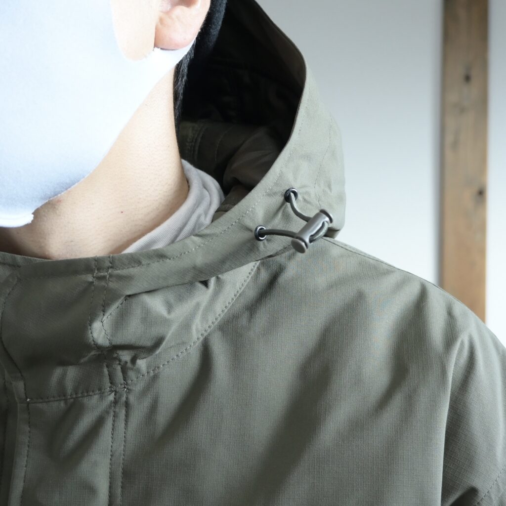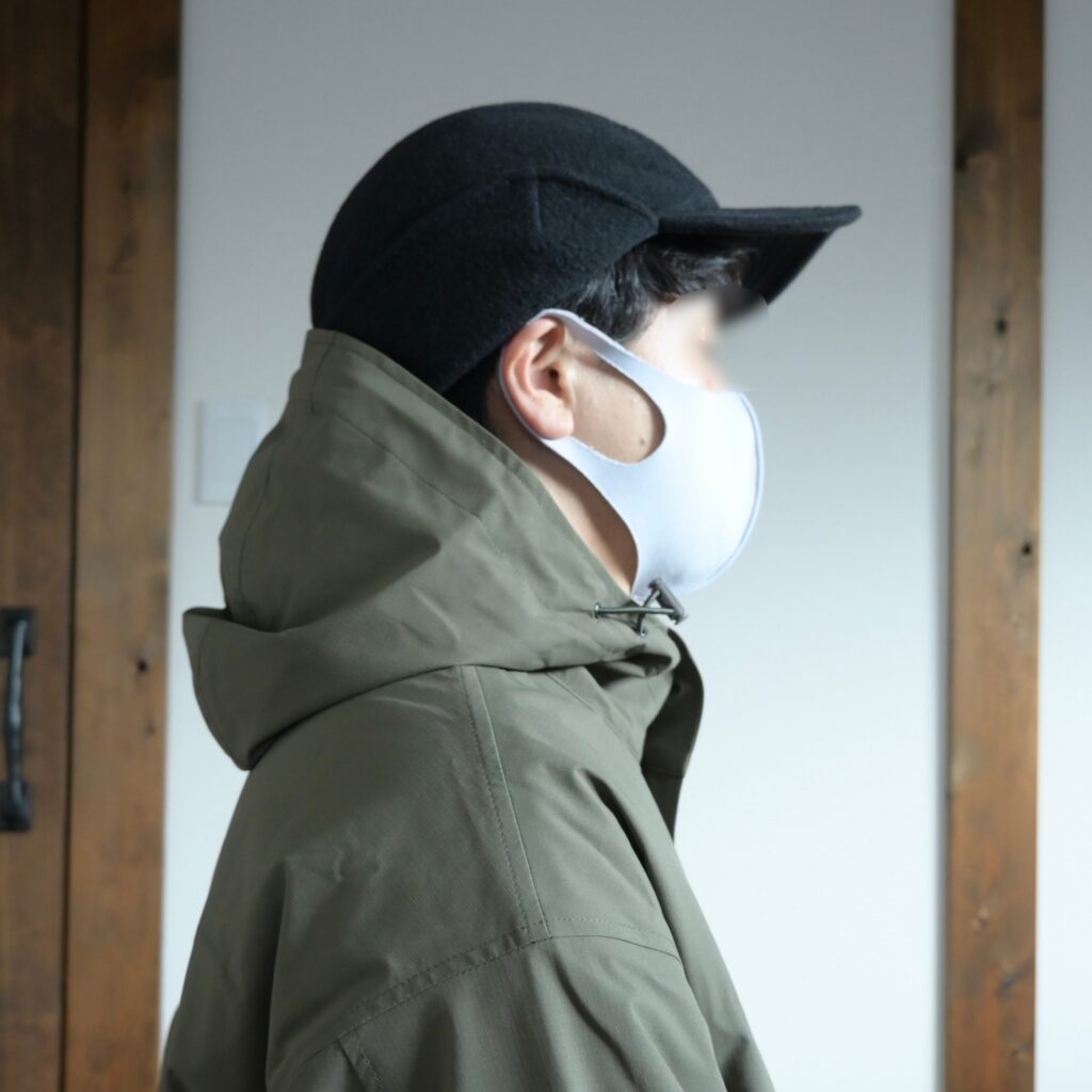 確かに実際に着てみると首周りにゆとりがありつつもフードの立体感が凄く綺麗だったり、ゴツめなデザインなのに腕が動こかしやすかったりと、無骨ながらも機能性の高さを実感しました。