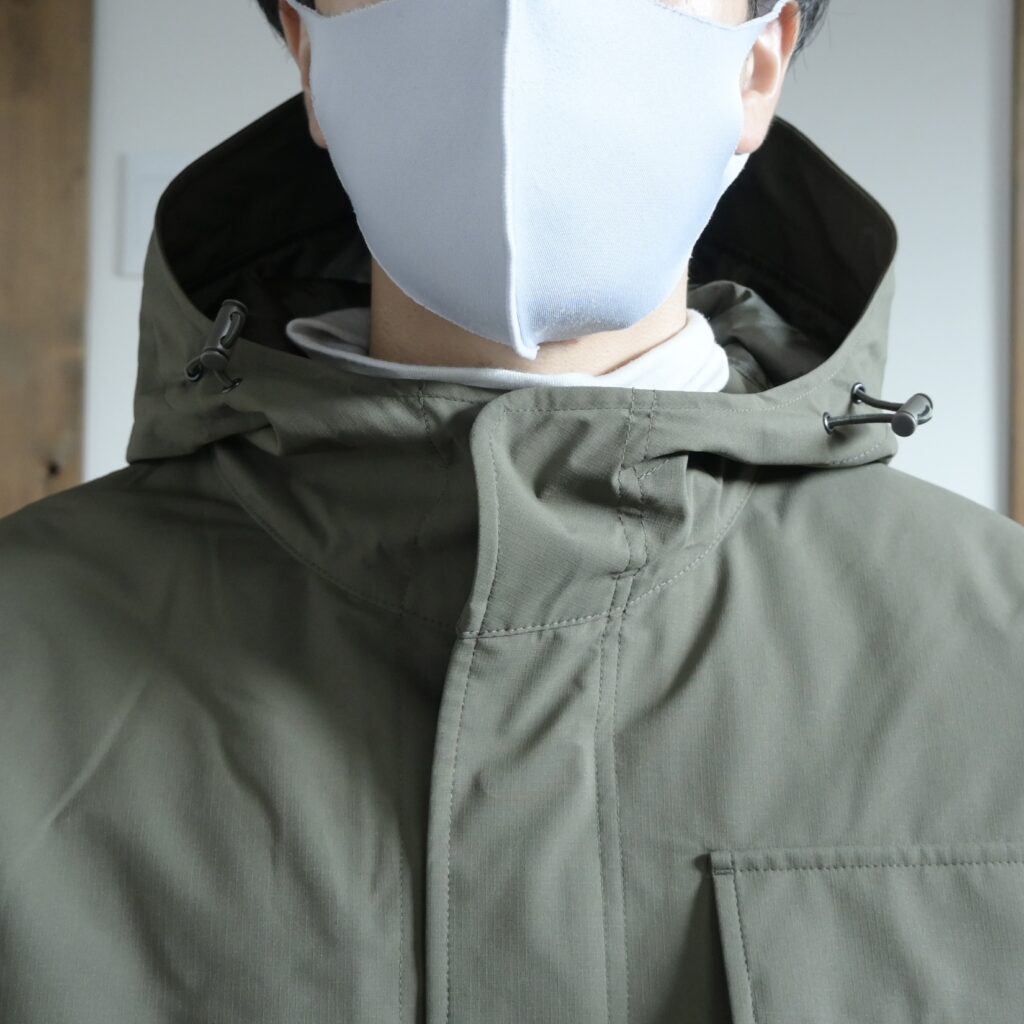 こちらのアウターを着てみて最初に感じたのは”フードの形がすごく良い!”という点について。