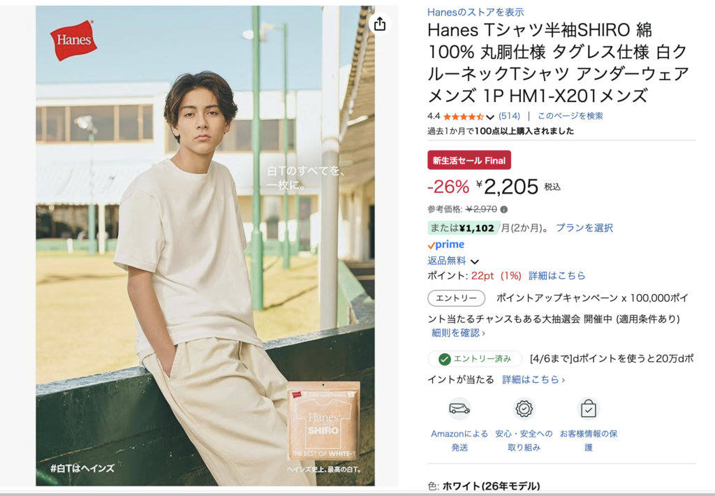 さて、今回はアメリカの老舗アンダーウェアメーカーのhanes(ヘインズ)で購入した”最高の白Tシャツ”と言われている『SHIRO』の2026年モデルをレビューしていこうと思います。