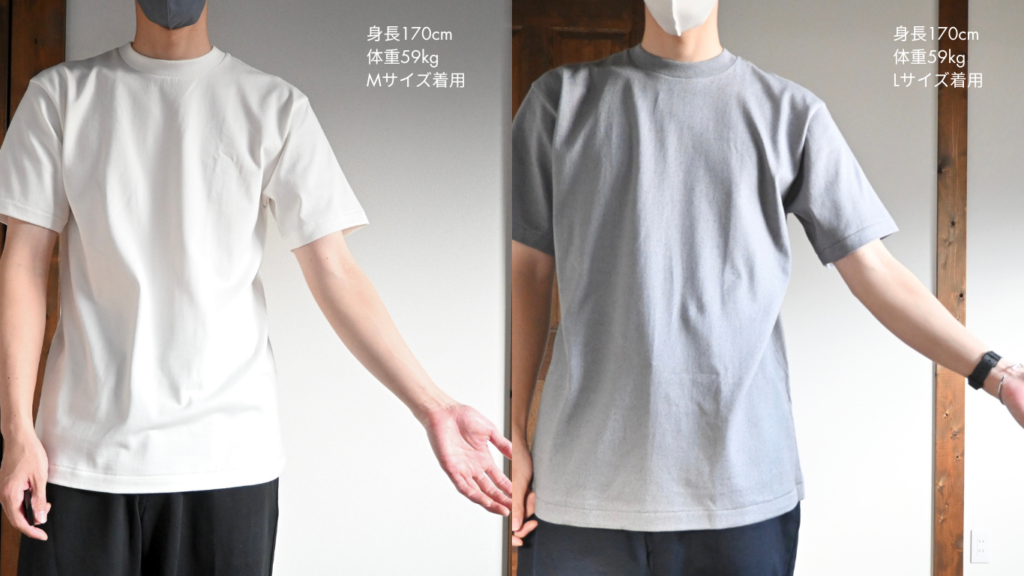 今回購入したSHIROは、”KURO”や”MOKU”というシリーズとサイズ感は全く同じなので、少し前に購入した最高のグレーTシャツ”MOKU”とサイズ比較をやってみようと思います。
