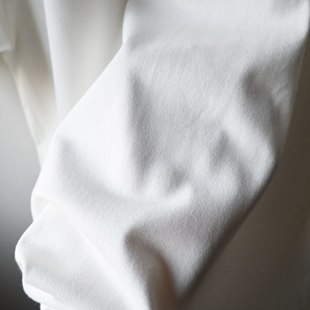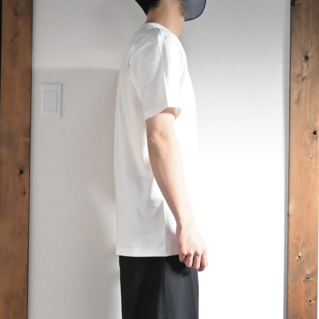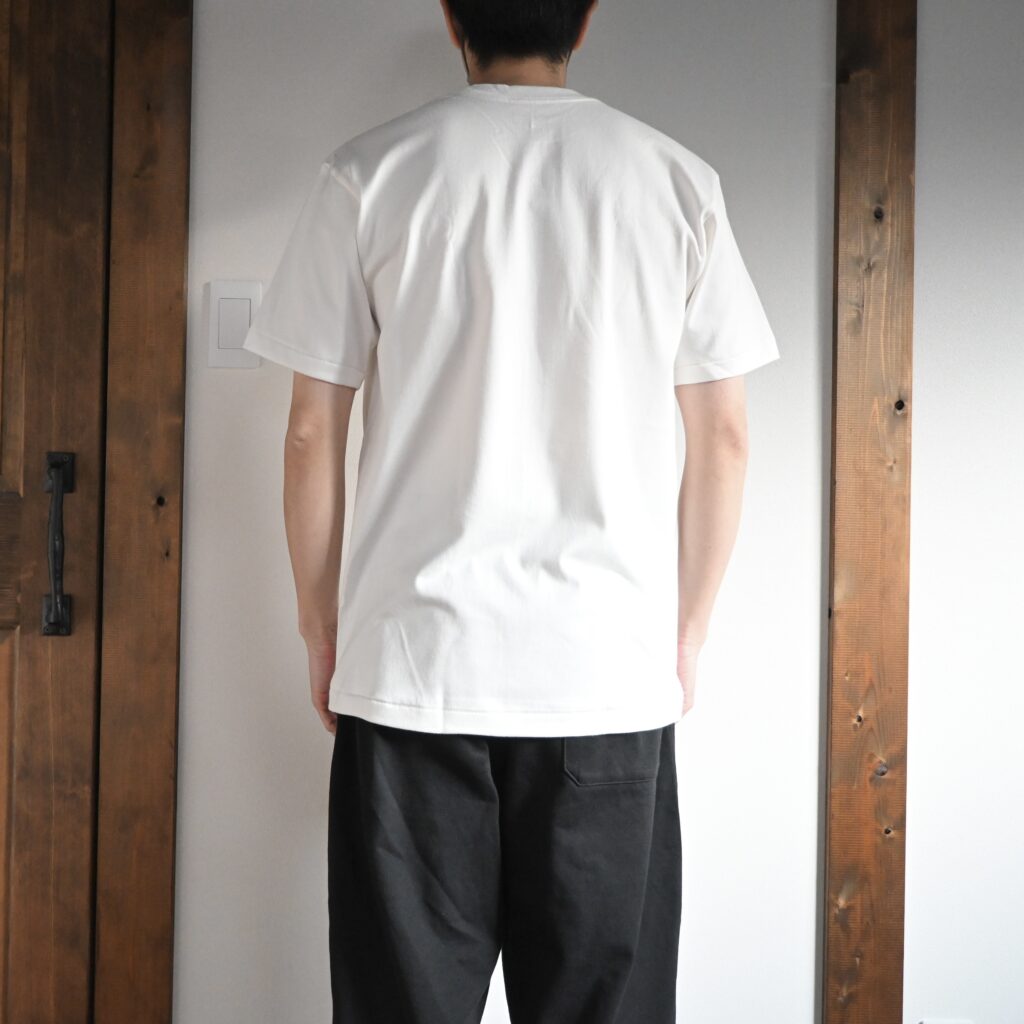7.0オンスのコットン100%の滑らかな着心地で、全然透けない白Tとして非常に良かったと思います。サイズ感としては着丈がやや長いかな?という印象でしたが、身幅や肩幅に適度なゆとりがあり大人っぽく綺麗に着られると感じました。