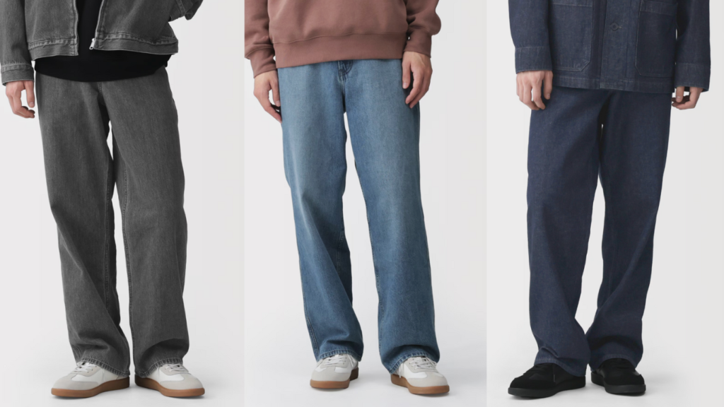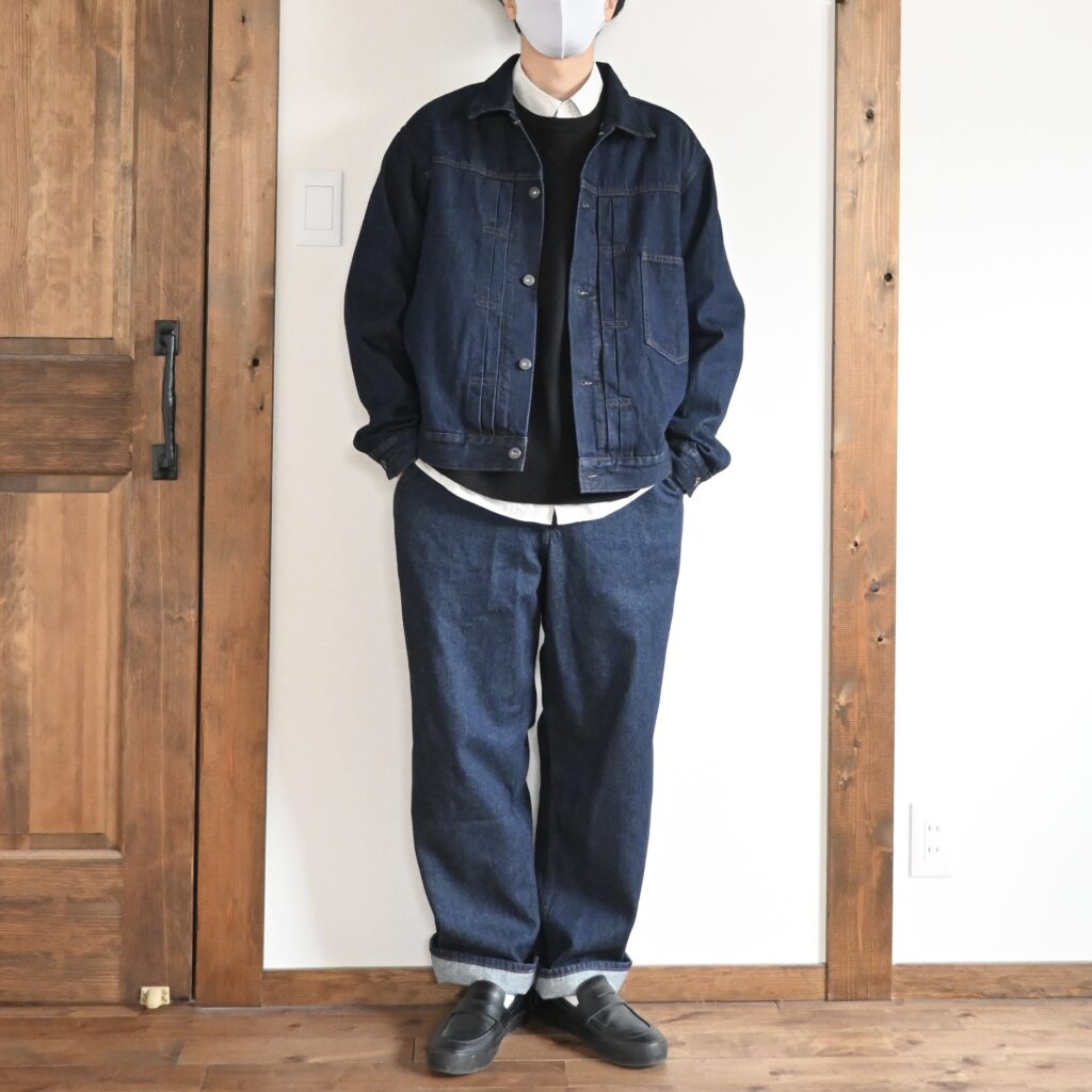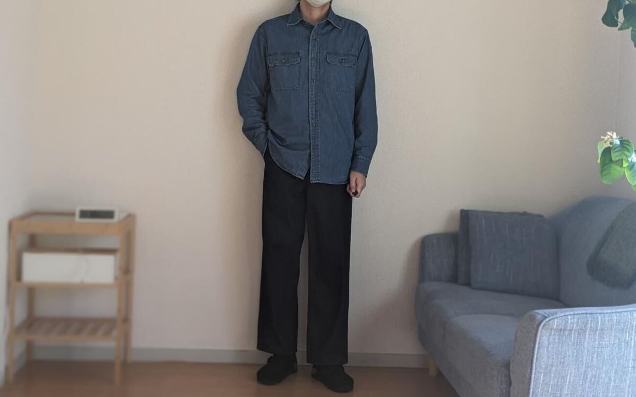 ワイドジーンズはUNIQLOやGUでも色々と出ていますが、今回は敢えて無印良品で購入しました。UNIQLOやGUよりも1,000円ほど高いんですが、生地感やシルエットが非常に僕の好みだったので、今からワイドデニムを探すなら無印良品は一見の価値があると思います。