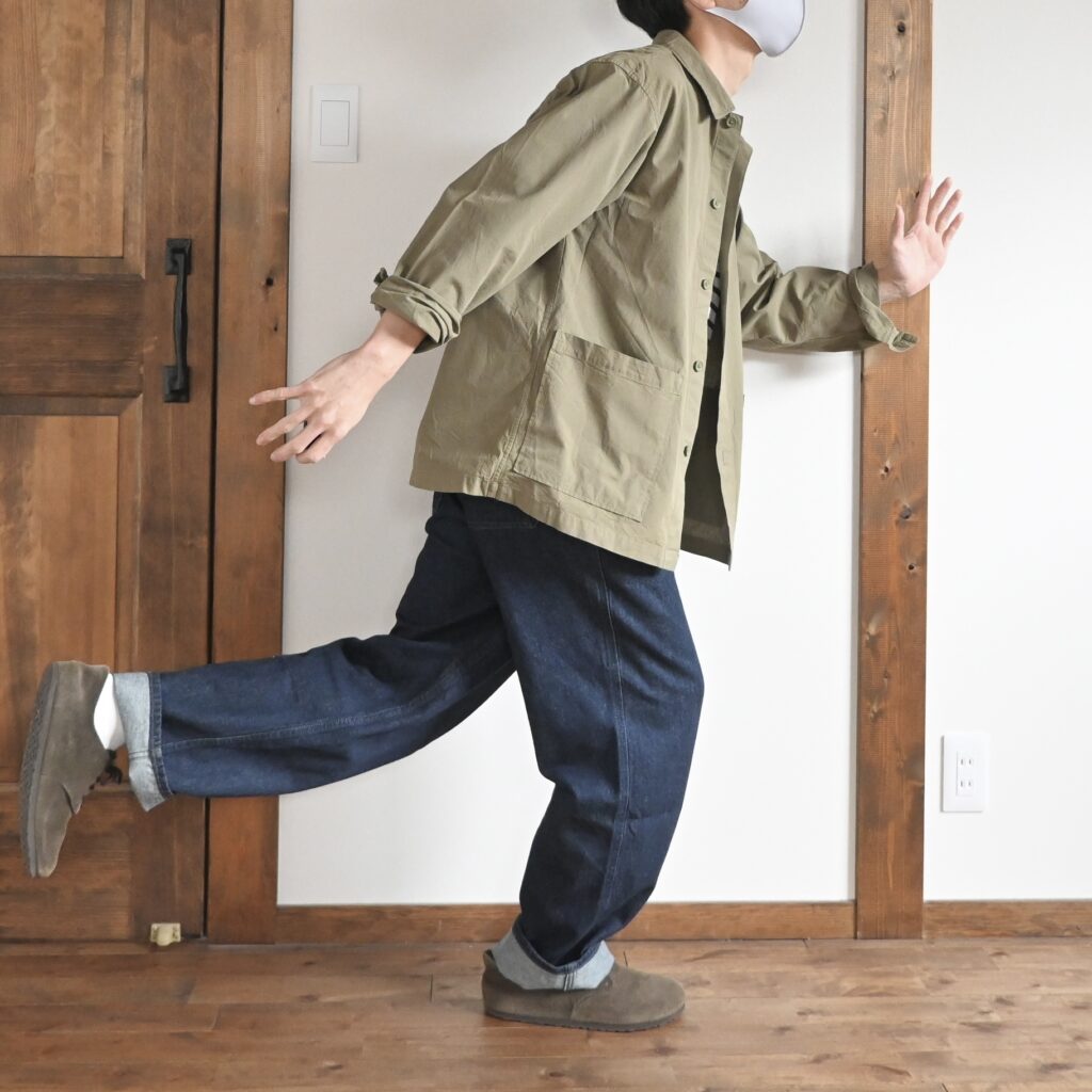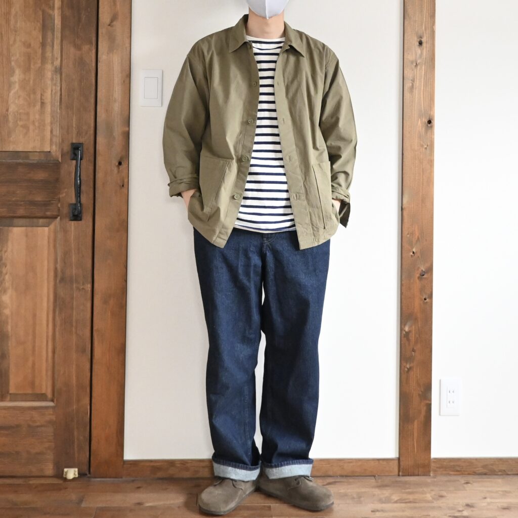 デニムパンツはカーキのアイテムと相性が良いので、昨年の秋に無印良品で購入したシャツジャケットを合わせてみました。