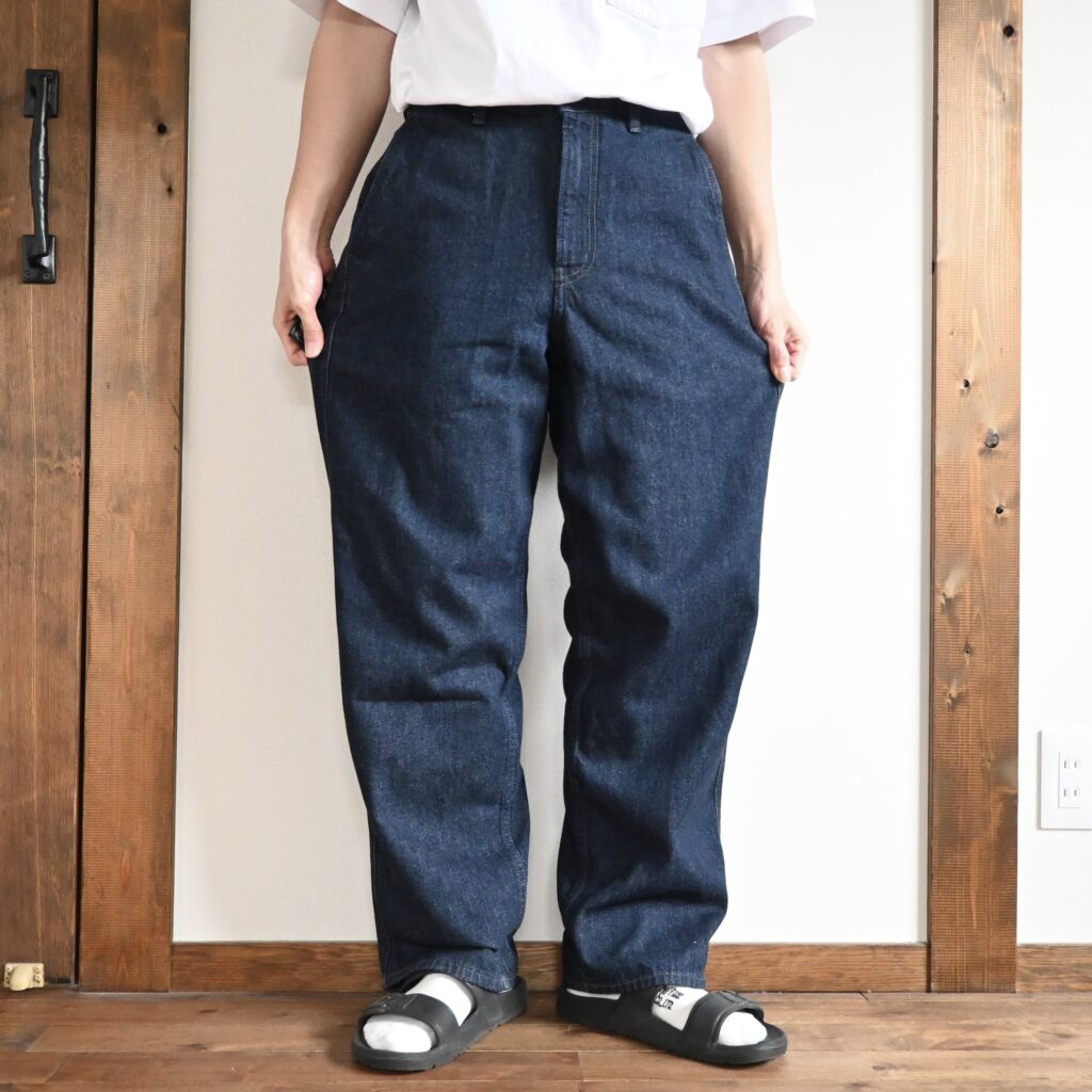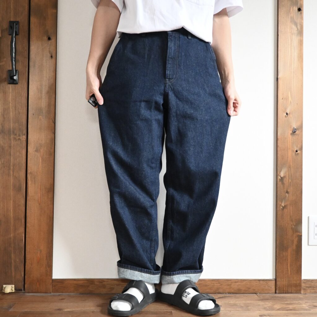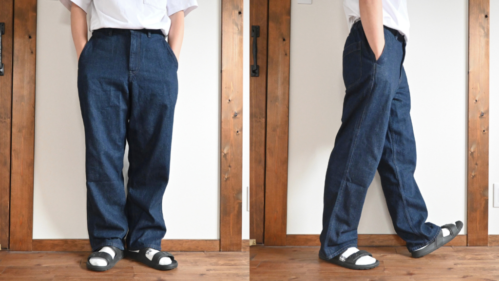 本格的なジーンズが好きな方からするとペラペラしてイマイチに感じるかもしれませんが、僕は一般的なジーンズの厚手な生地感だと、それなりに気温が高い日に履くとジーパンの中が蒸れて辛い…という経験があるので、春夏でも履けるデニムパンツとして重宝するかなと思います。