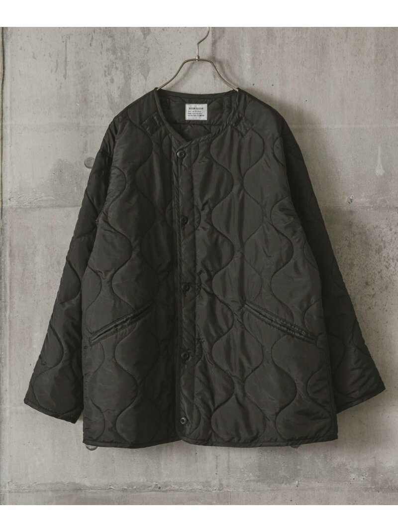 最後は襟なしのコートを合わせてみました。今回は敢えて黒のパンツを合わせてみましたが、足元のスニーカーをグレーやホワイト系のものを持ってくれば重くなり過ぎないと思うので、上下暗めにする場合は足元だけでも明るさを加えてあげると良いと思います。