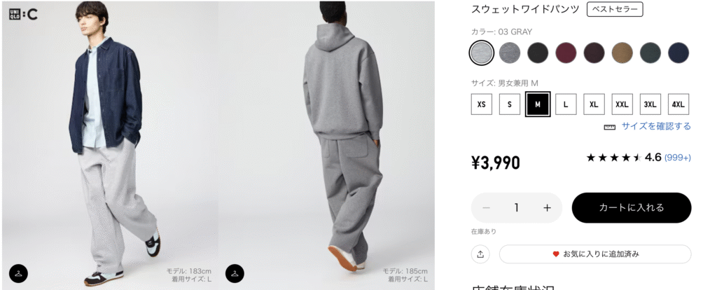スウェットワイドパンツといえば、やはりユニクロのコラボラインである『UNIQLO:C』の方を連想する方も多いのではないでしょうか。UNIQLO:Cのスウェットワイドパンツは、昨年秋にリリースされて今ではユニクロの定番アイテムになっていますが、その超人気ワイドパンツと比較してどうなのか?という比較をやっていきたいと思います。