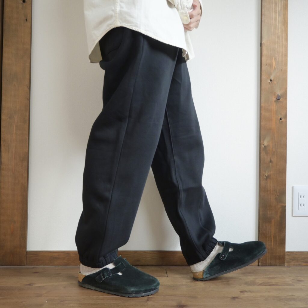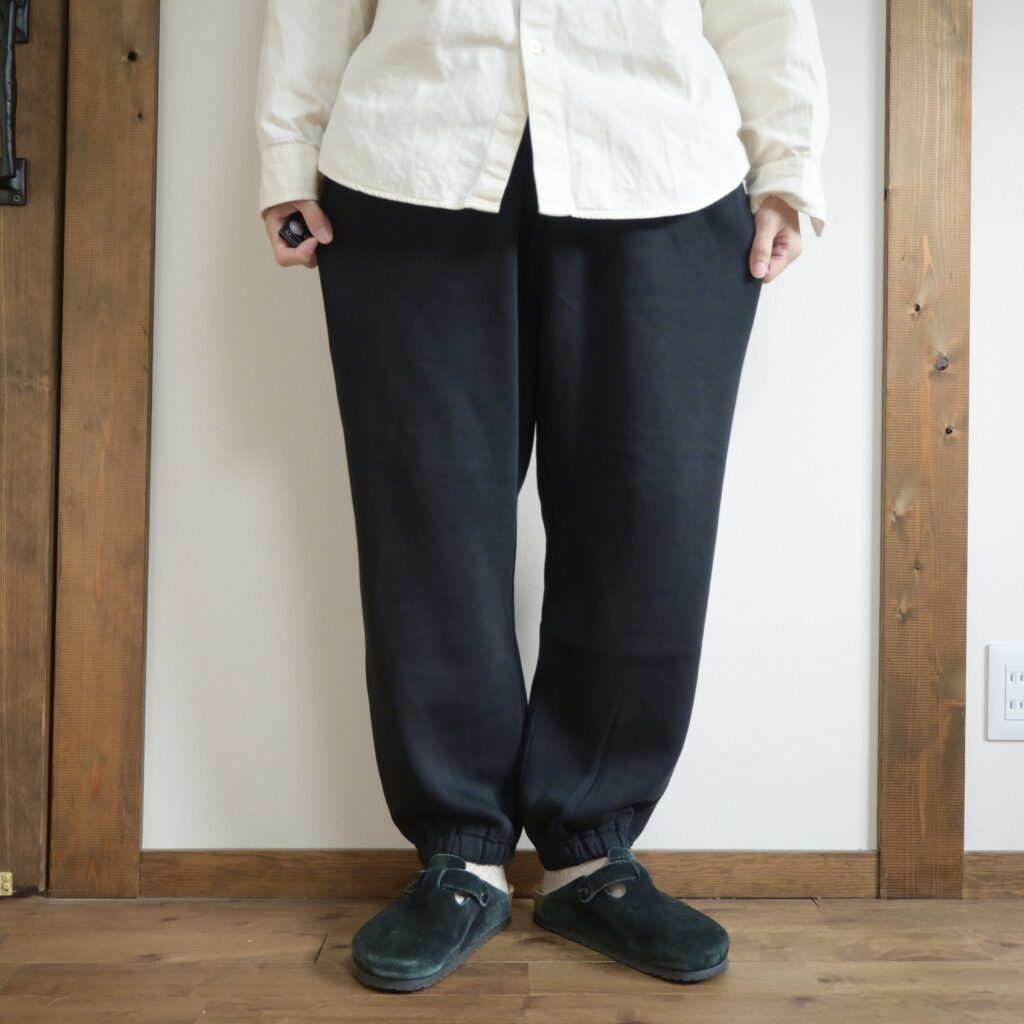 裾が絞られていて、商品だけ見るとTHE部屋着という感じはしますが、実際に履いてみると程よいワイドシルエットが非常に使いやすく感じました。