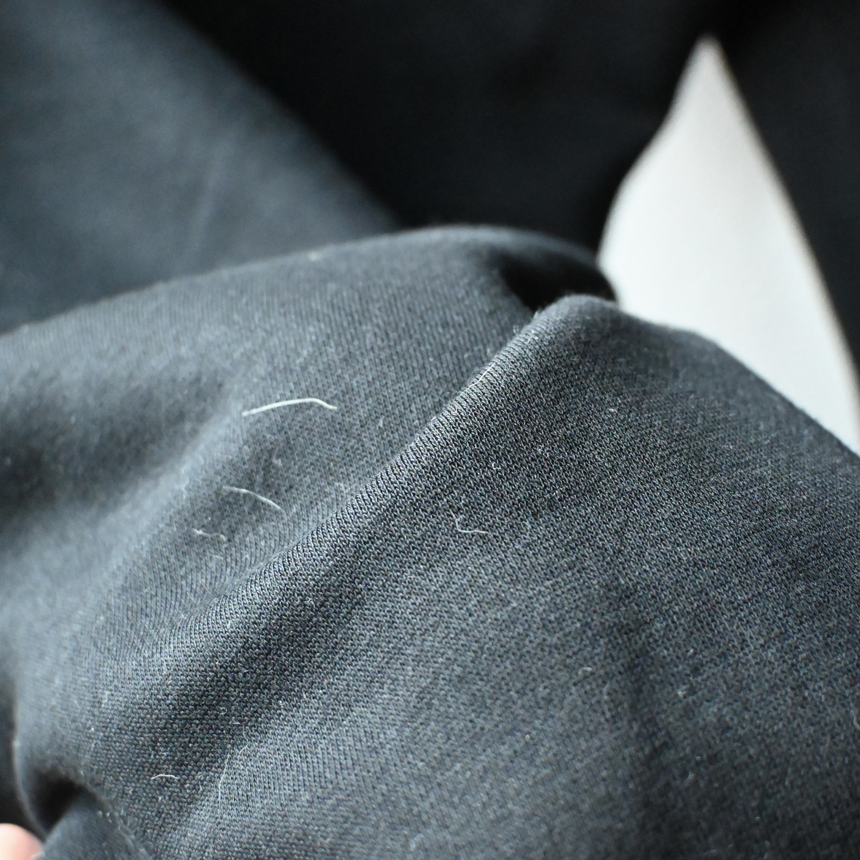 黒は使いやすい色だと思いますが、埃やペットの毛が付くとかなり目立つのでそこは注意して下さい。お出かけ前にはコロコロが必須だし、犬や猫を飼っている方は時期によってはパンツが真っ白になるので注意。