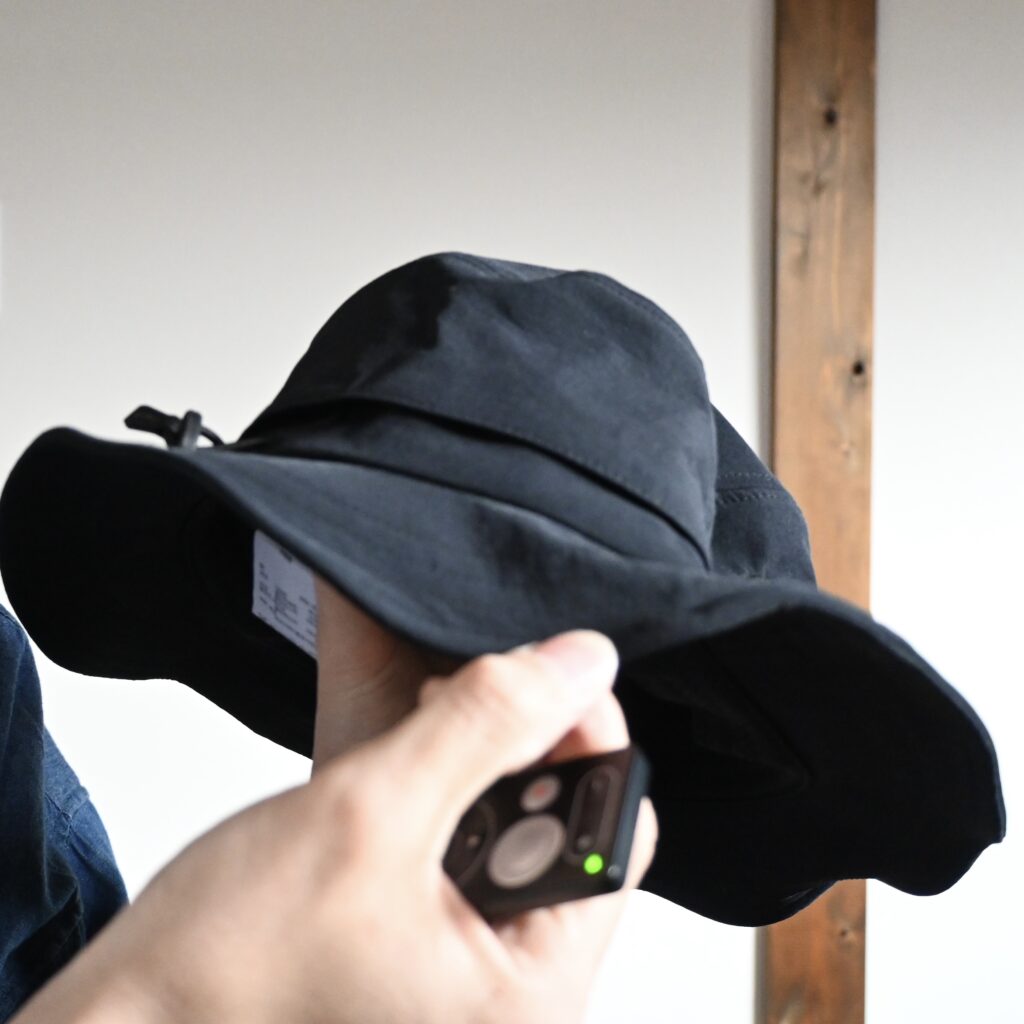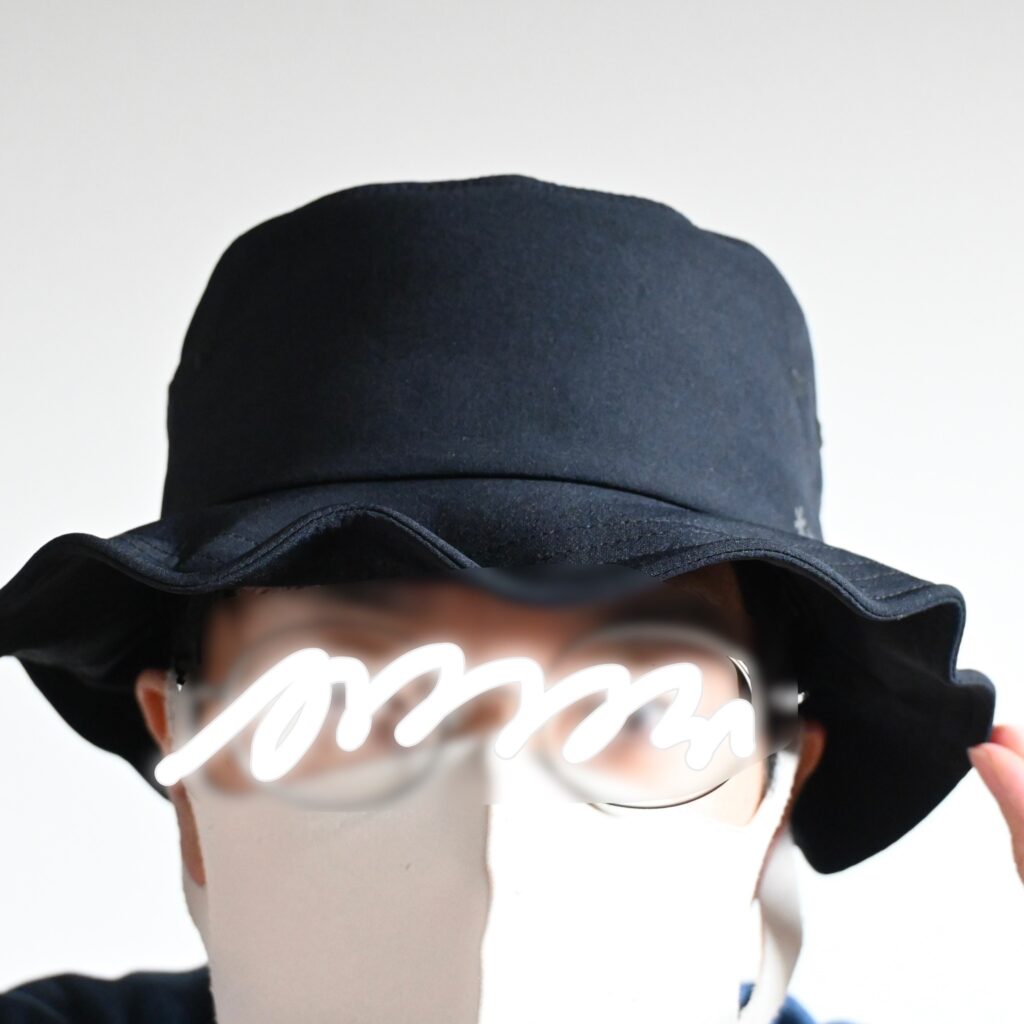 こちらの帽子はつばにワイヤーが入っているので、つばを曲げたり伸ばしたりと形を変えることが可能です。と言っても、そこまでグニャグニャに曲げて使うこともないかなと思うんですが、形を変えることでかなり印象が変わるので、コーデや状況に応じて変えるというのも面白いかなと感じました。