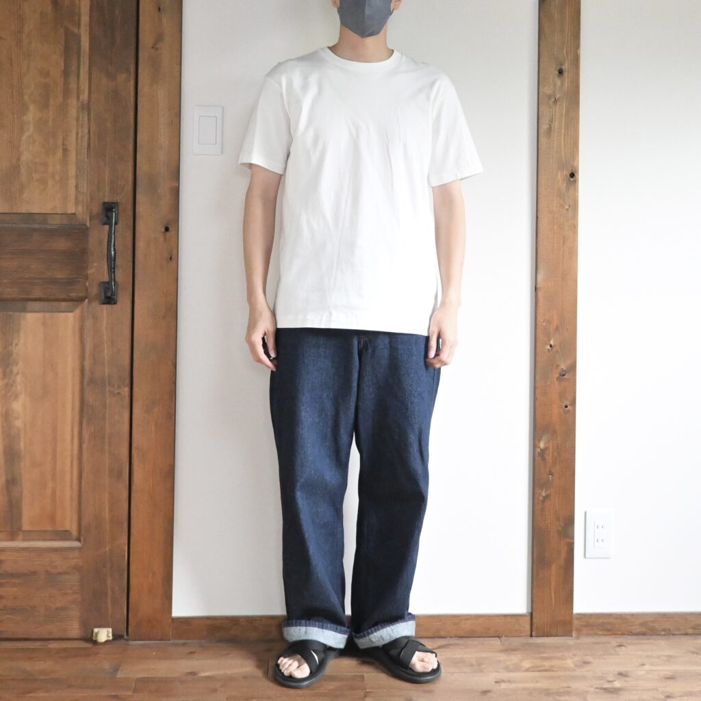 これからの季節で僕が着そうな服装に合わせてみたんですが、Tシャツにジーパンというシンプルな服装からシャツを使った涼しげな服装まで幅広い服装で合わせやすいサンダルだと思います。