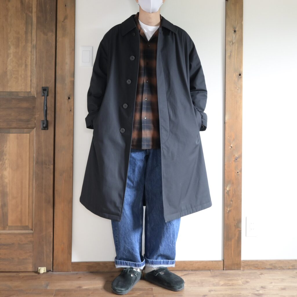ロングコートの内側には、シャツやニットはもちろんパーカーやスウェットまで基本的に何でも似合うので、今回のオープンカラーシャツでも大丈夫かなと感じました。