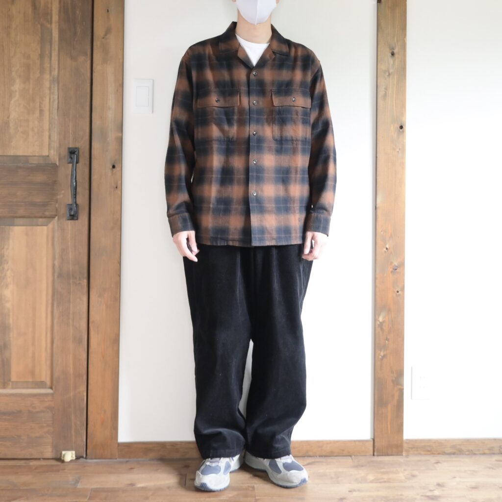 長袖のオープンカラーシャツというのも凄く珍しいなと思います。オープンカラーシャツといば夏に着るものというイメージが強いんですが、長袖でも今回のシャツのようにオーバーサイズでリラックス感のあるシルエットなら意外にアリだなと感じました。