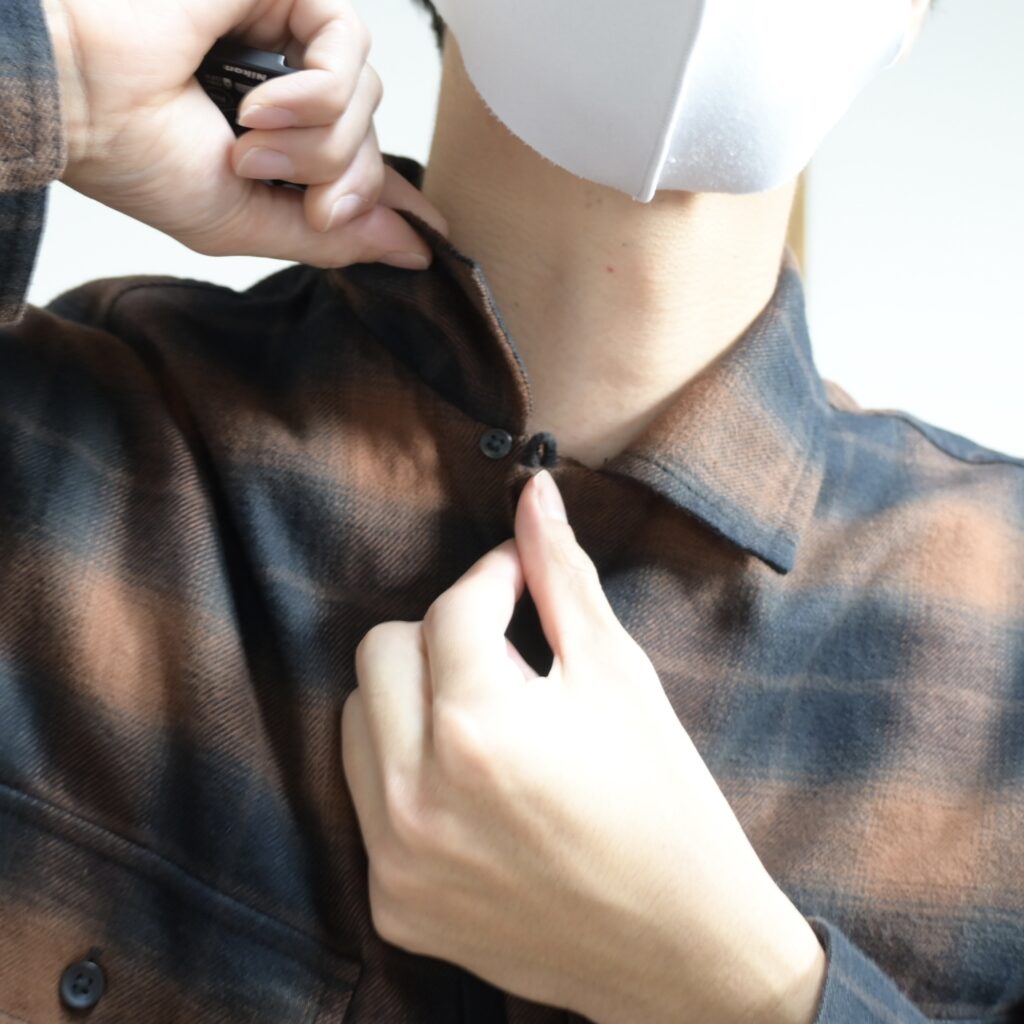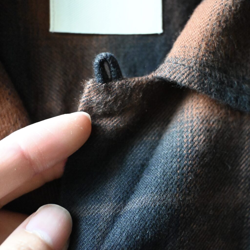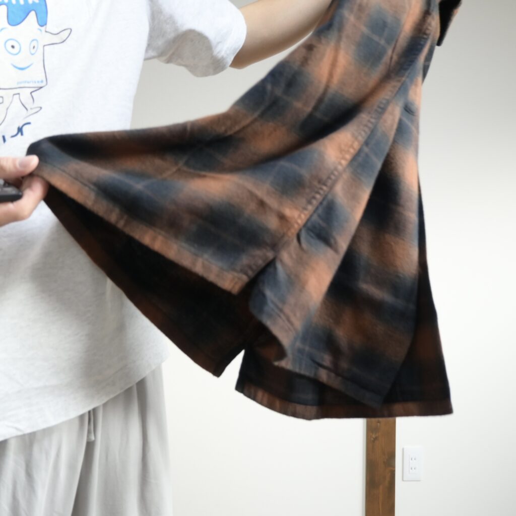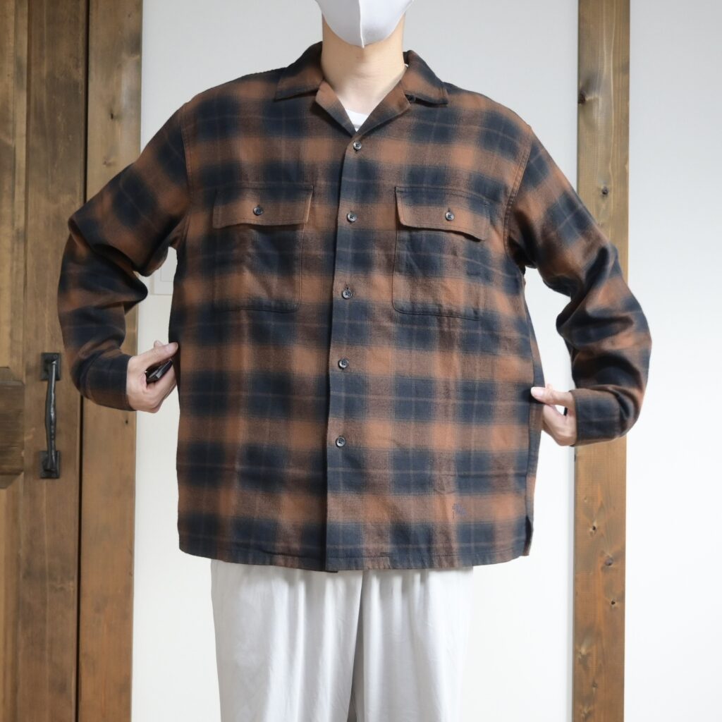 素材はコットン100%で起毛感のある秋冬に適した生地でした。”ブラッシュド”と商品名に入っていますが、生地としてはネルシャツです。そこまで厚手ではないので、今の時期に1枚で着ても良いですし季節が進んで冬になると、インナーとして使うのも良さそうですね。
