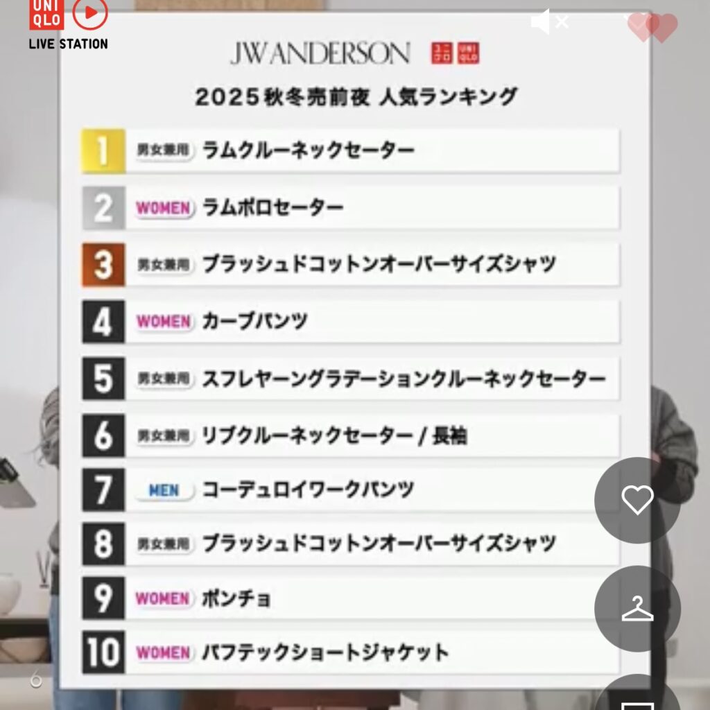 10月16日に配信されたユニクロのLIVE STATIONで見たんですが、ユニクロ×JW ANDERSON 2025AWのアイテムを対象に、アンケートで発売前人気投票が行われていたようです。