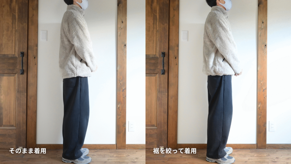 もう1点特徴的だったのが裾の両サイドにドローコードが付いています。