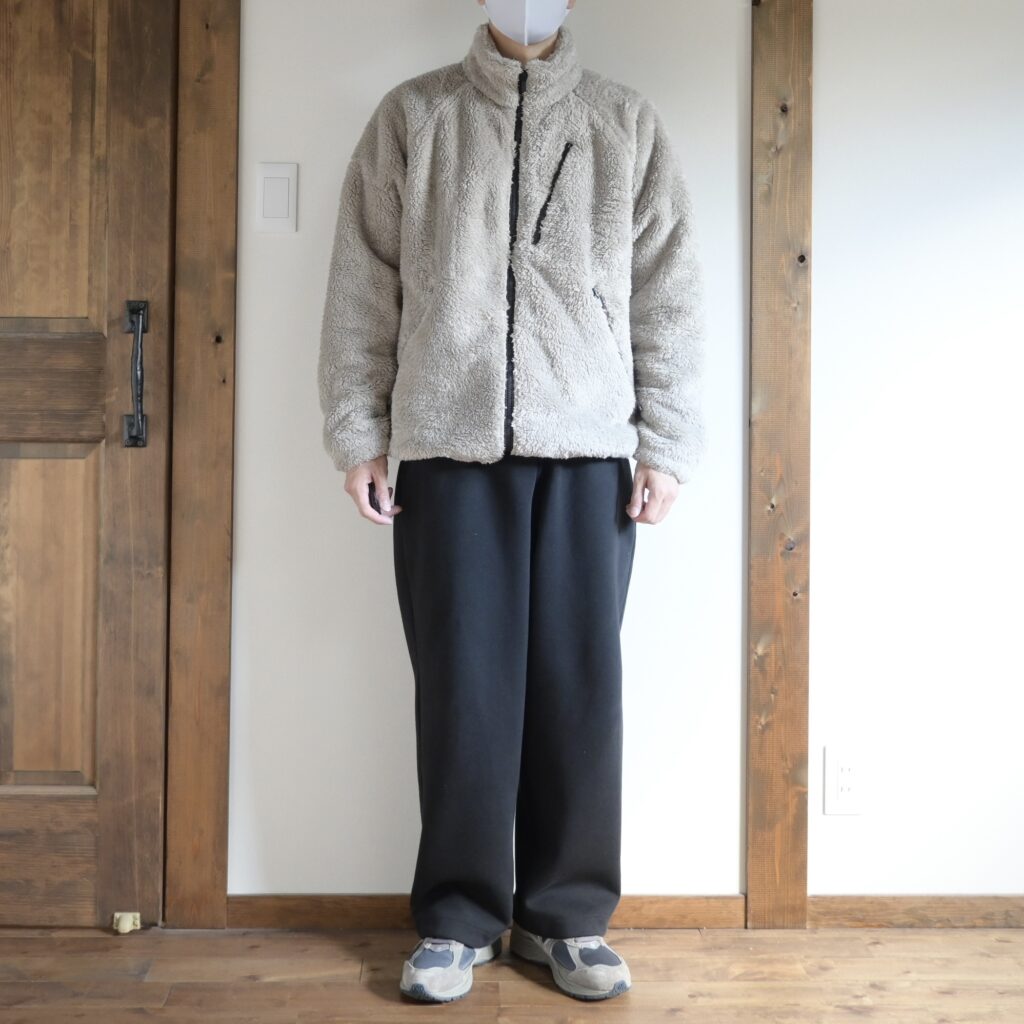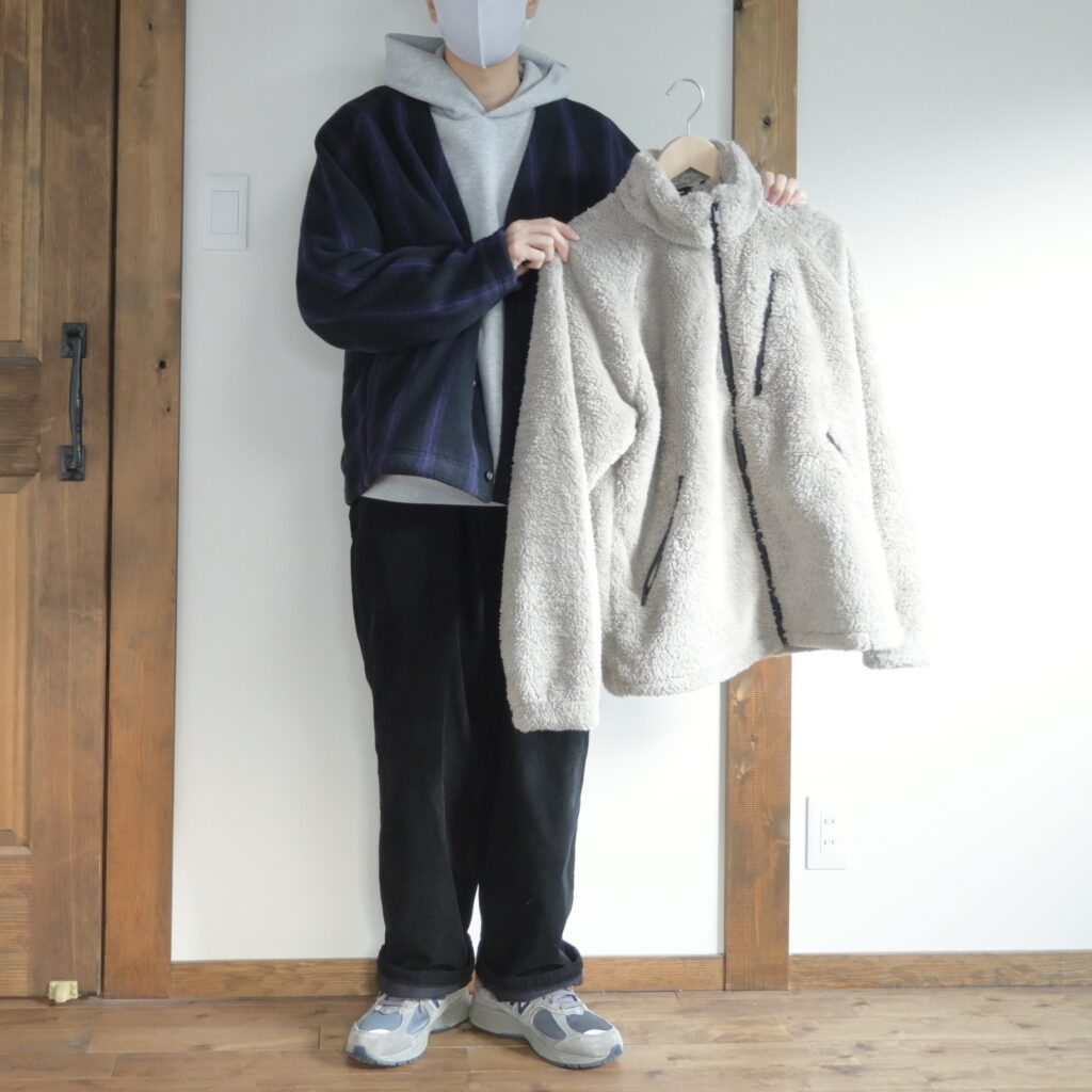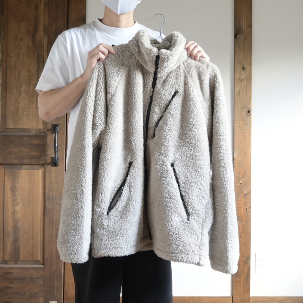 フリースというカジュアルな素材なので、少しサイズUPしてラフに着るのがちょうど良いかなと感じました。
