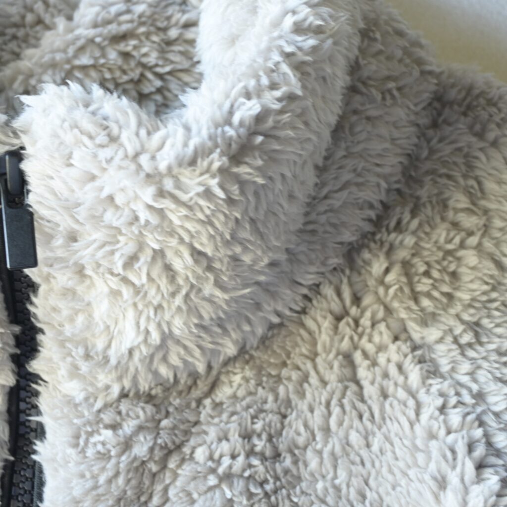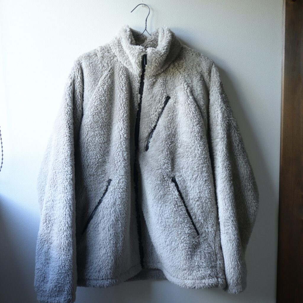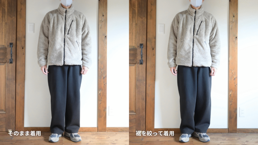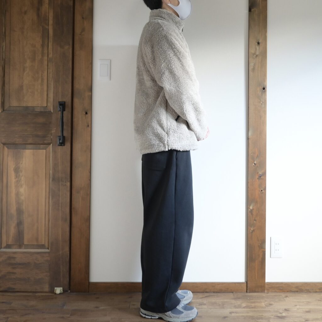 フリースというカジュアルな素材なので、少しサイズUPしてラフに着るのがちょうど良いかなと感じました。
