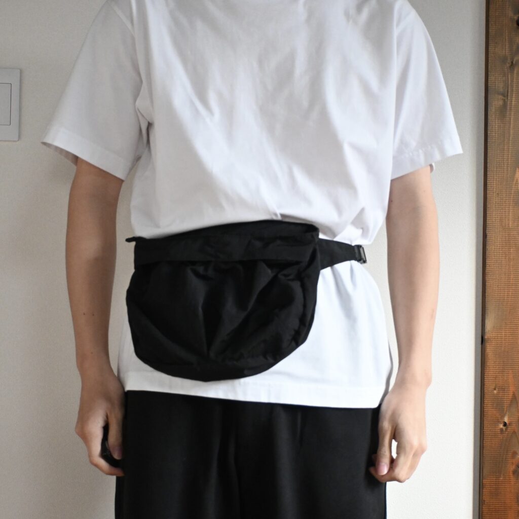 財布やスマホは勿論、500mLのペットボトルも問題なく入るので、お出かけの際に役立ってくれそうです。写真のようにボディバッグとしてもウエストポーチとしても使うことが出来ます。