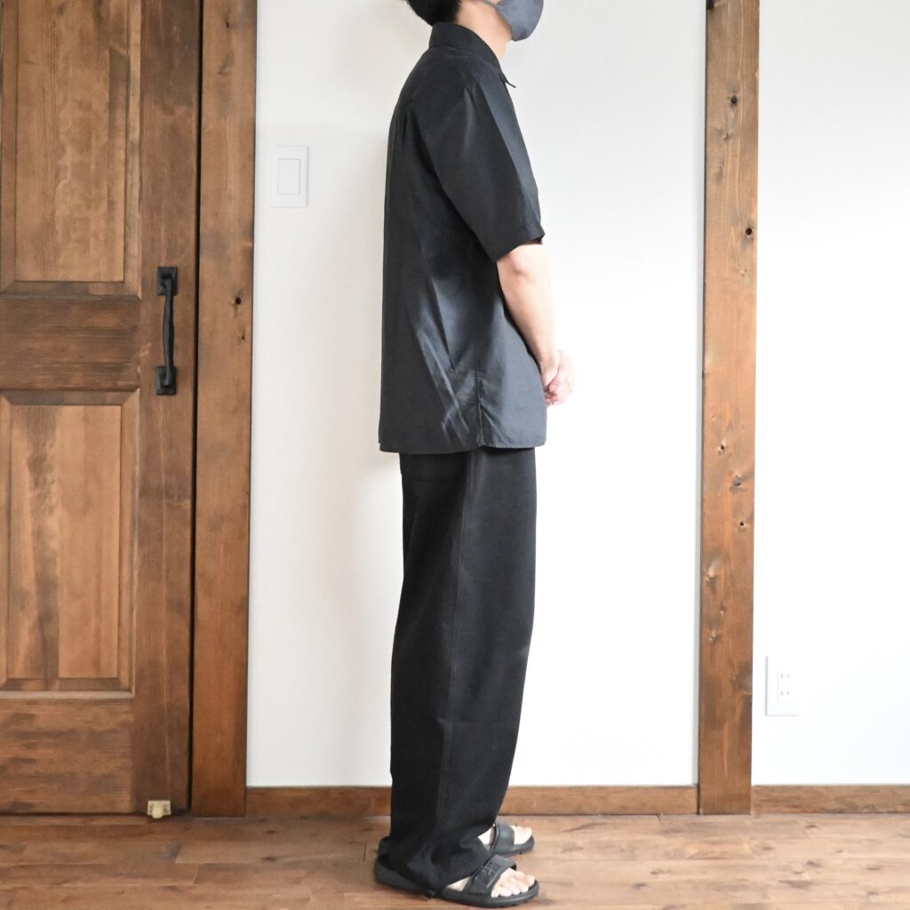 75%レーヨン、25%ナイロンの薄手で滑らかな素材感は凄く良かったし、短丈なデザインも格好良いなと思ったんですが、何故か僕には似合わなかったです。