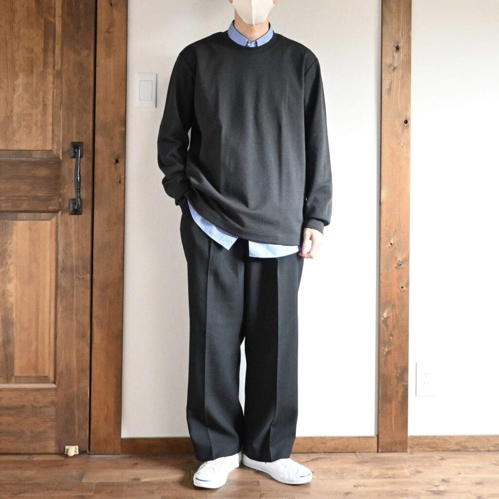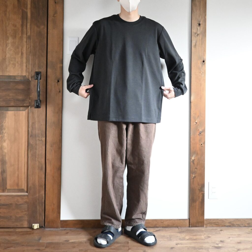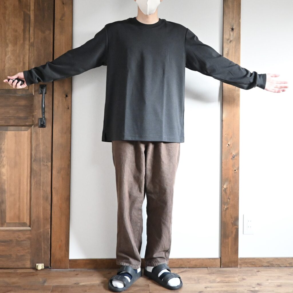 僕の場合はお出かけ着として使う予定ですが、緩めなサイズ感なので部屋着としても使いやすいかなと思います。