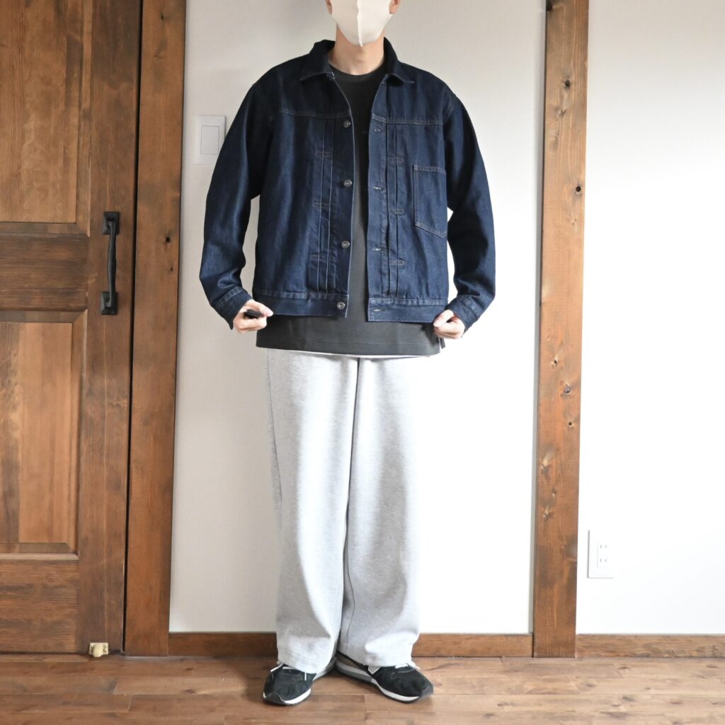 まずは今季ユニクロで購入したデニムジャケットを合わせてコーデを組んでみました。Tシャツもパンツもワイドシルエットなので、パジャマ感があるかな〜とも思ったんですが、まぁ僕の普段着なんてけっこうカジュアルな感じなので、一つのコーデ例として参考になればと思います。