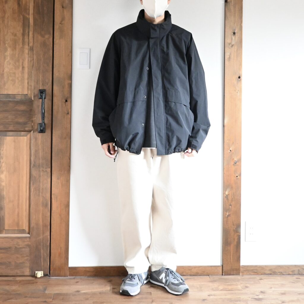 身幅や肩幅に余裕のあるリラックスフィットなので、オーバーサイズなトップスが好みな方には合うと思います。
