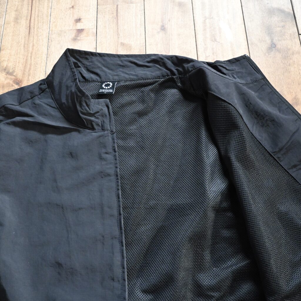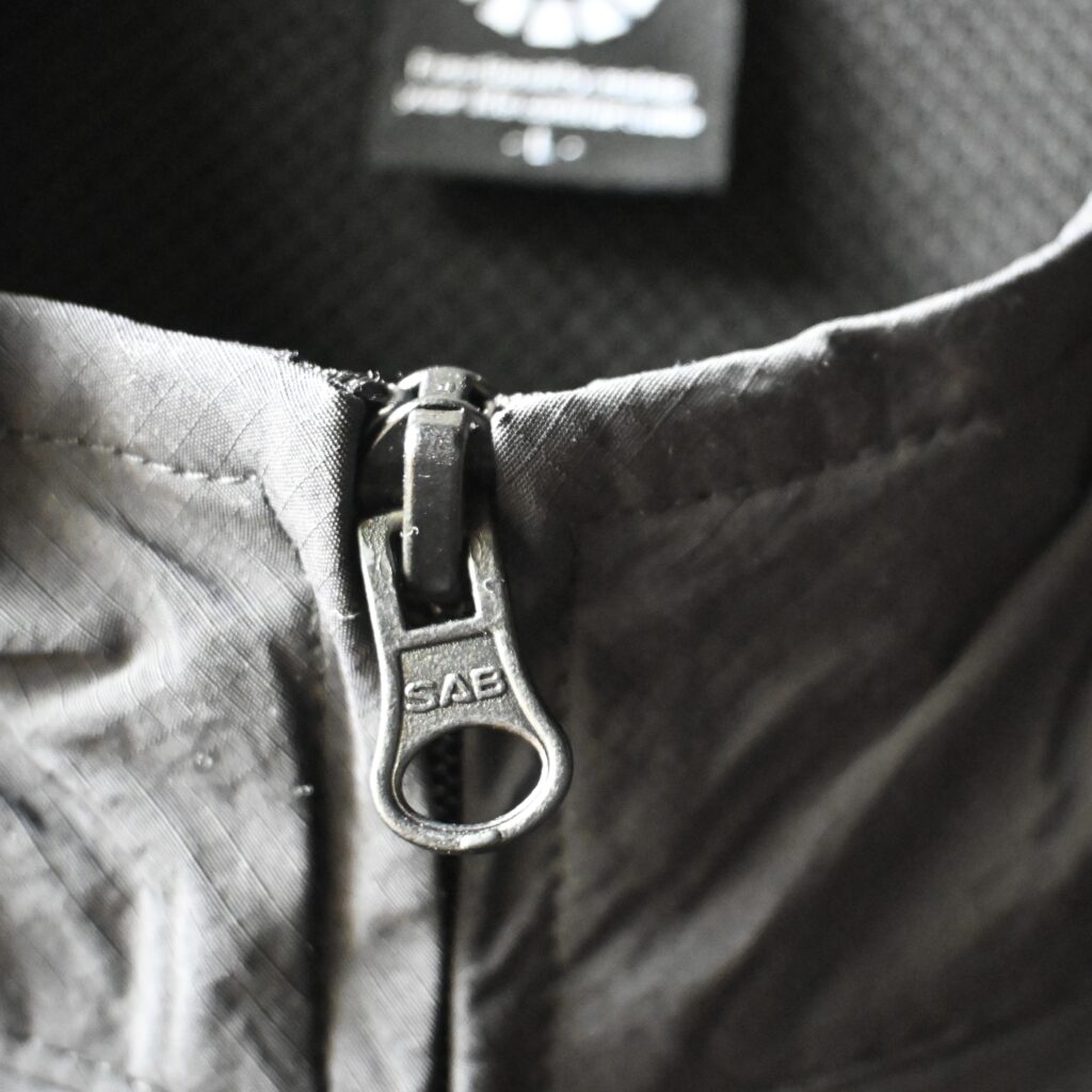 生地表面は撥水性の高いナイロン素材、裏地は通気性の良いポリエステル素材を使ったメッシュになっています。防寒性という面ではイマイチですが、それなりに風を防いでくれるので「シャツだけだとちょっと肌寒いな…」と感じる今の時期に丁度いい一着だと思います。