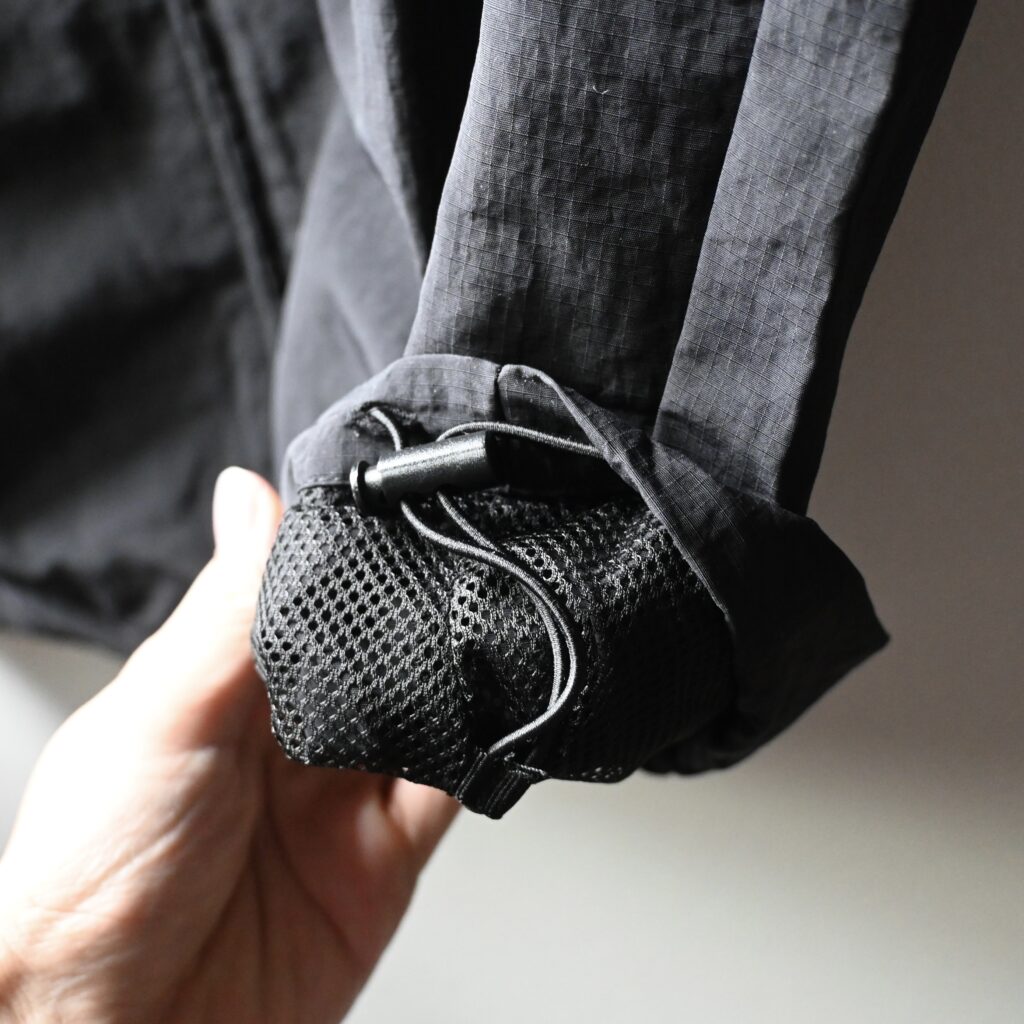 裾の両サイドについているアジャスターを調節することで、裾を絞ってシルエットを変えることも出来ます。