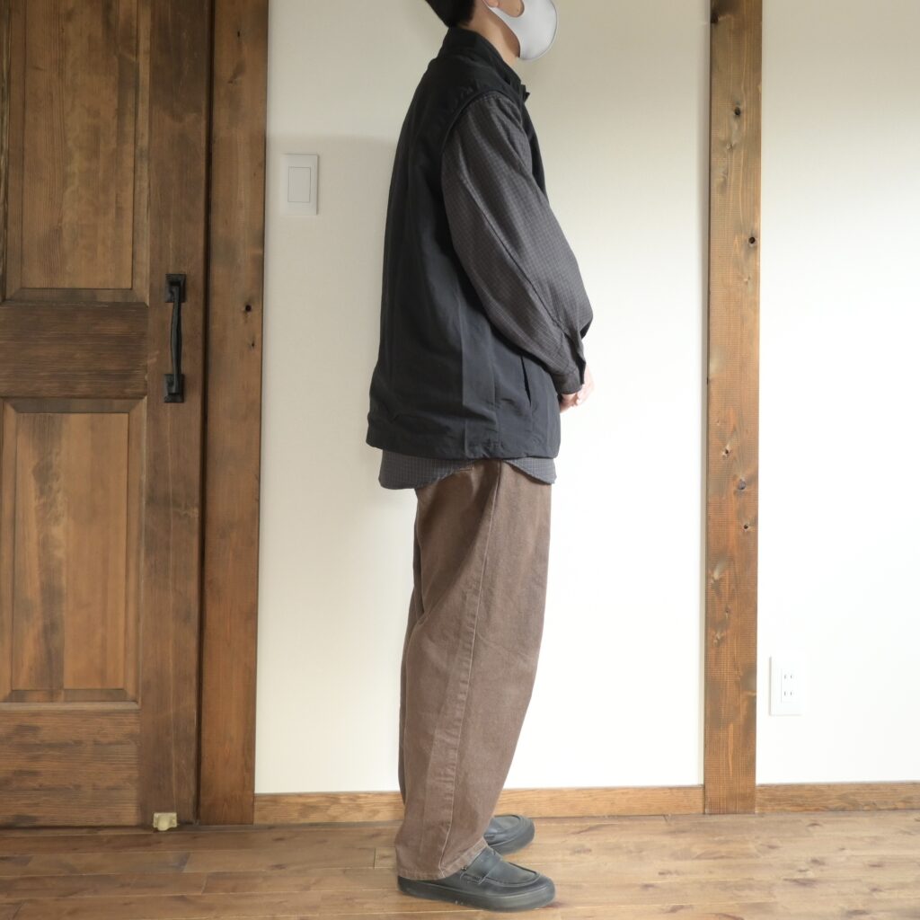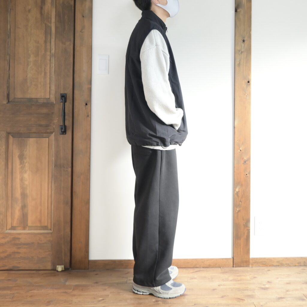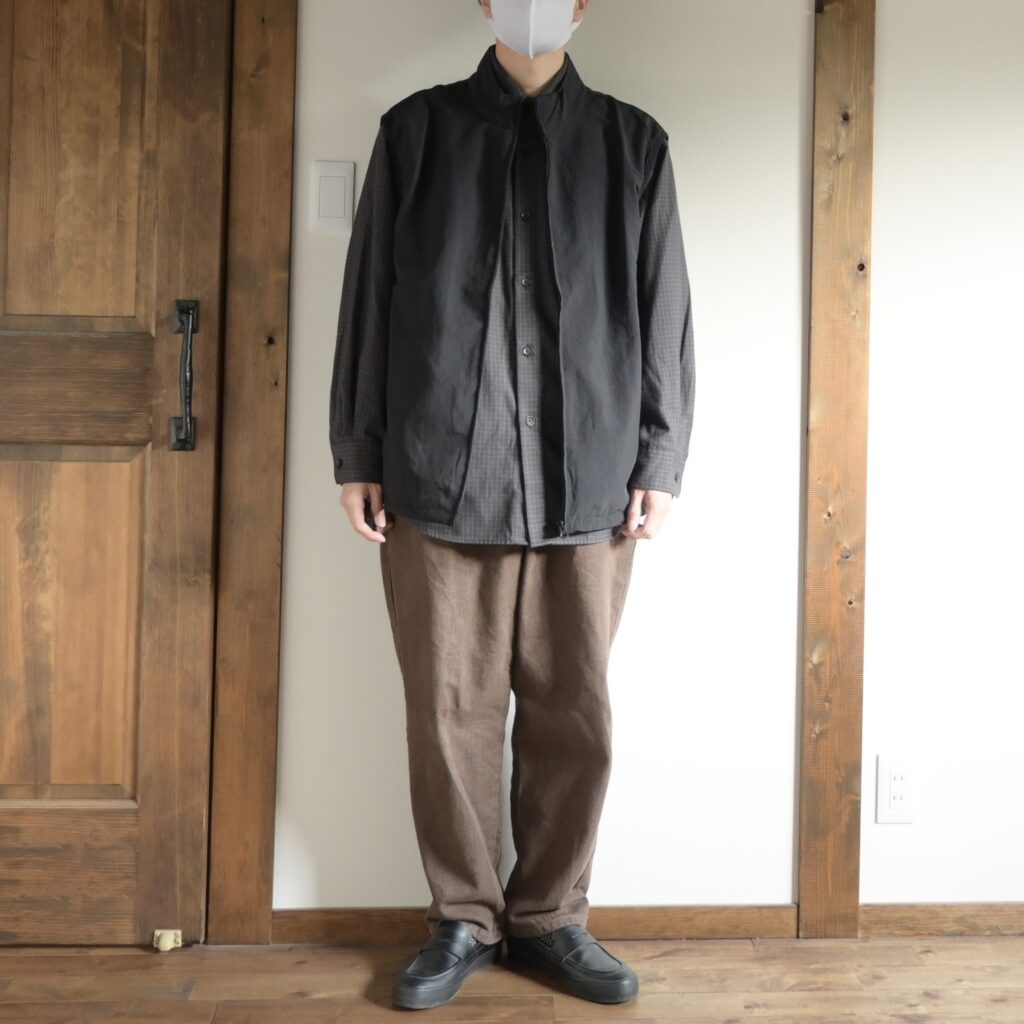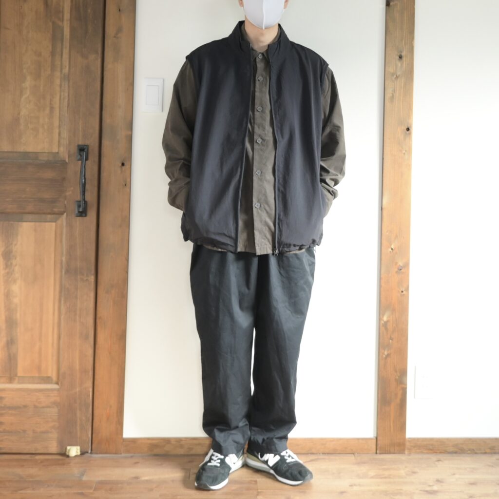 オーバーサイズなトップスにも合わせやすいワイドシルエットでありながらも、裾を絞れるギミックがあったり襟の高さが控えめだったりと、普段着に取り入れる上で地味に嬉しいポイントが多い個人的にオススメ出来るアイテムだと思います。
