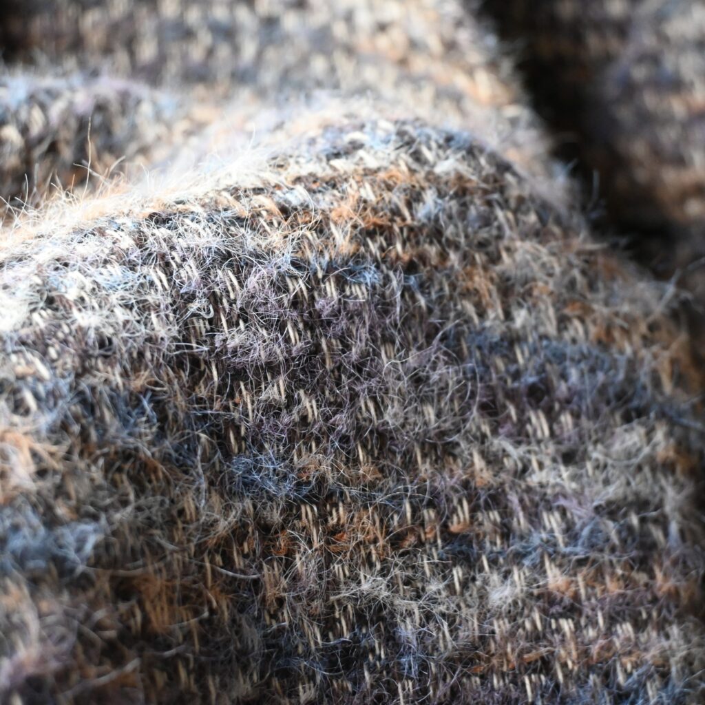 購入したのはブラウンというカラーになるんですが、表面を近くでみるとベージュや青、紫などが混じった曖昧な色味になっていました。個人的にはもう少しブラウン強めでも良かったんですが、この古着っぽい色合いも良い感じです。