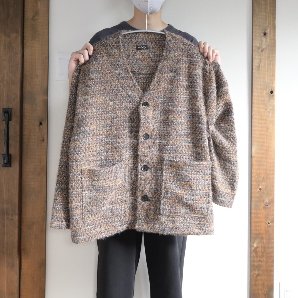 今回購入したのは『ルーズツィードカラーレスカーディガン』という、ポリエステル100%のツィード素材(絨毯みたいな生地)で作られたカーディガンです。